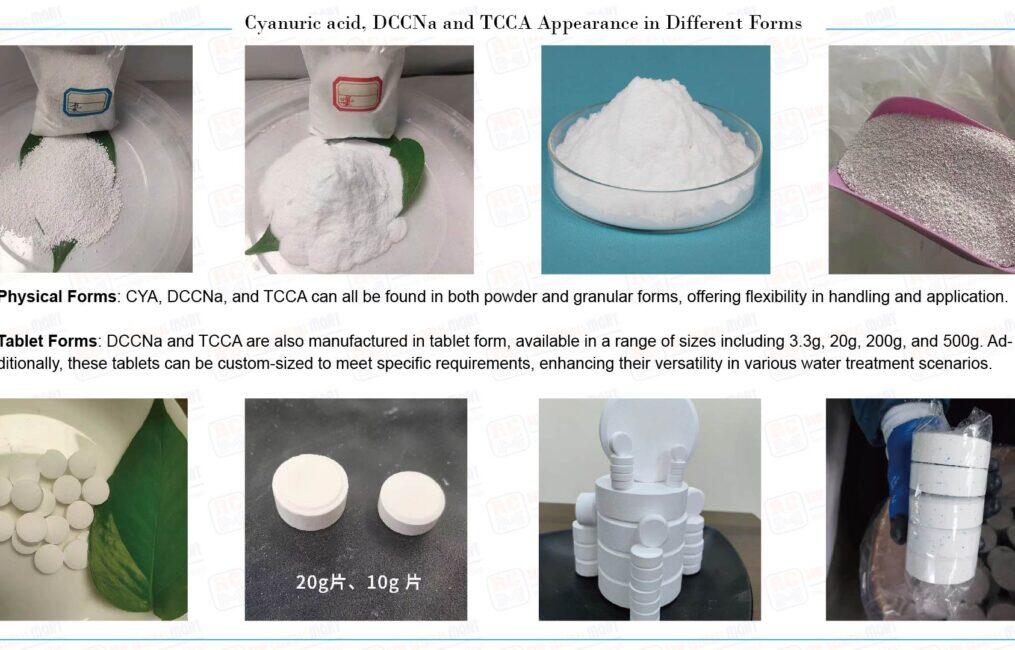 CYA, DCCNa, and TCCA are available in multiple physical forms to ensure flexibility and ease of use in different water treatment scenarios: