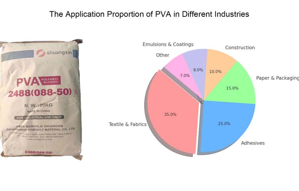 PVA is extensively used in textiles for fabric finishing and warp sizing, enhancing fiber strength during weaving. In adhesives, it serves as a key ingredient in wood glue and paper adhesives due to its strong bonding properties. Additionally, PVA plays a critical role in construction as a cement additive, improving workability and adhesion.